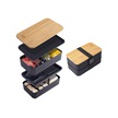 Skycity Doğu Stili Çift Katlı Bambu Kapaklı Bento Kutusu, Yemekleri Ayırır, Mikrodalga Uygun, 420g, İş/okul İçin Taşınabilir Isıtıcı Çantası Hariç Siyah