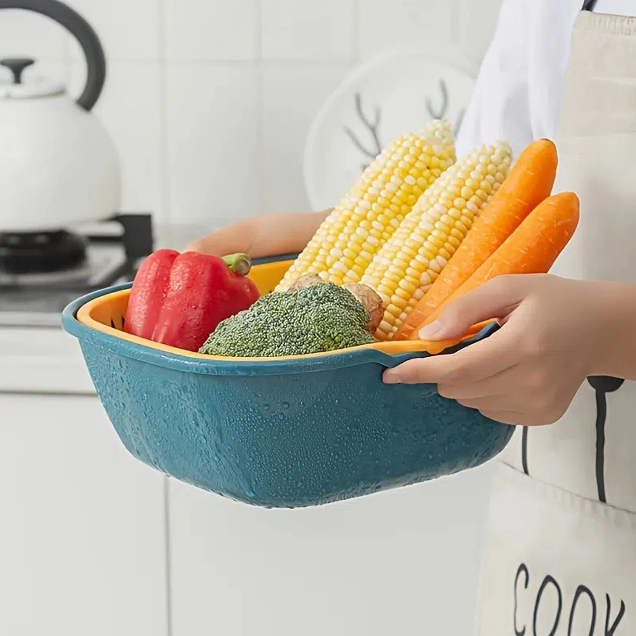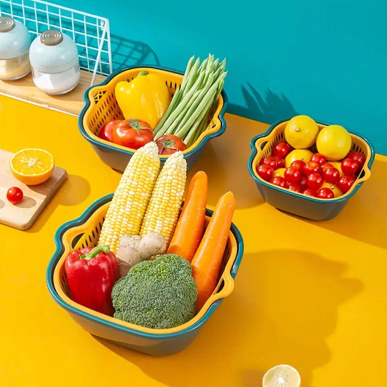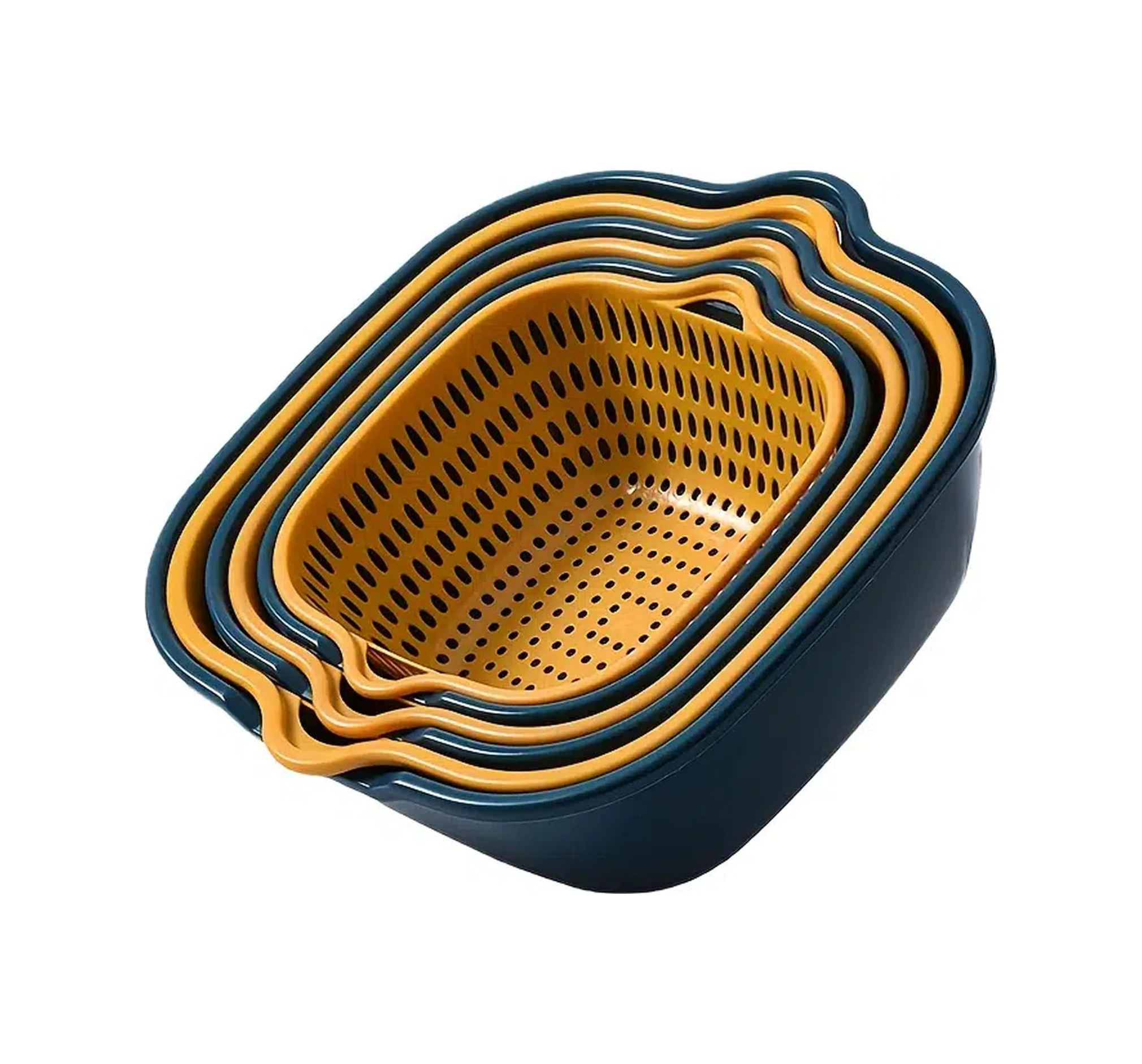 Skycity Ev Kullanıma 6'lı Katlı Plastik Yıkama Sepeti - Mutfak Meyve Sebze Süzme Sepeti Büyük-orta-küçük Set - Güvenli, Dayanıklı Ve Kolay Temizlenir Mavi - Sarı