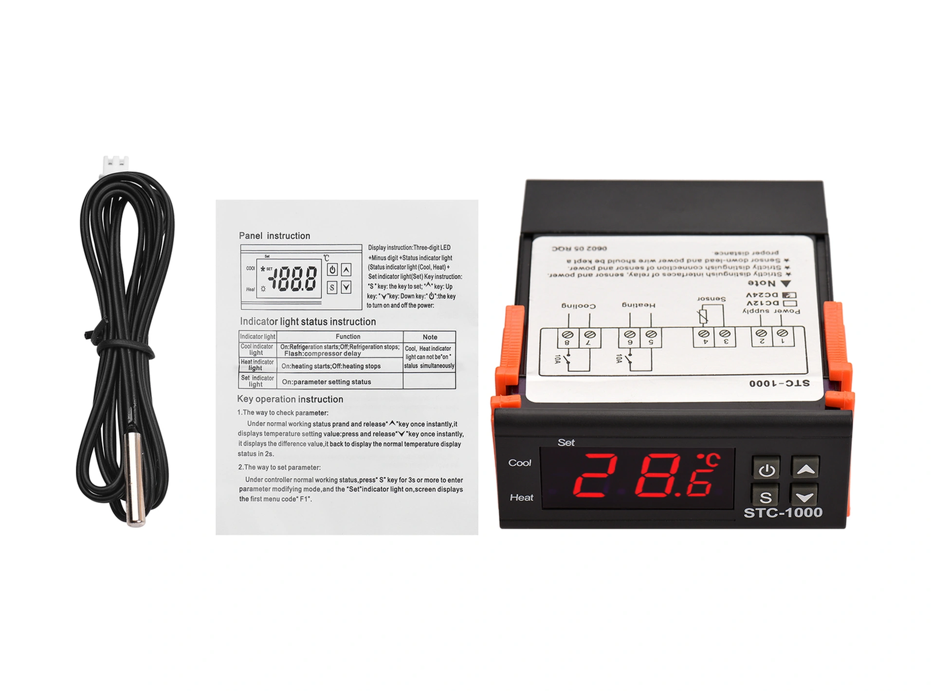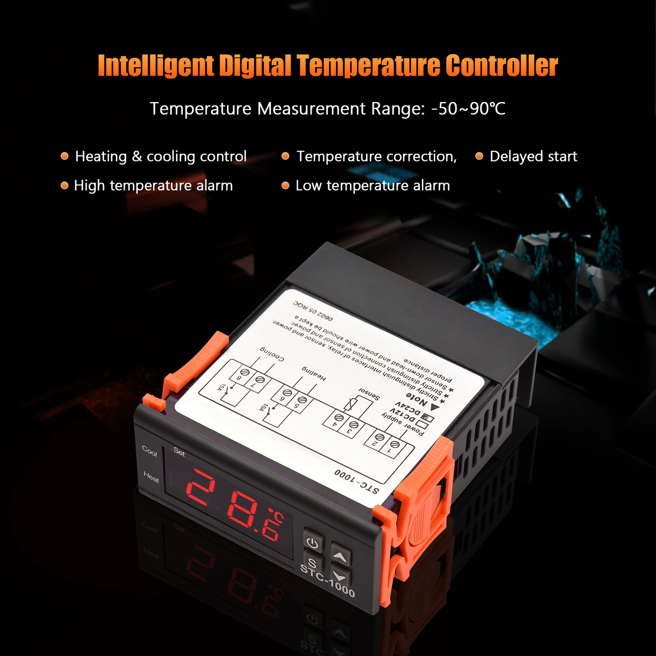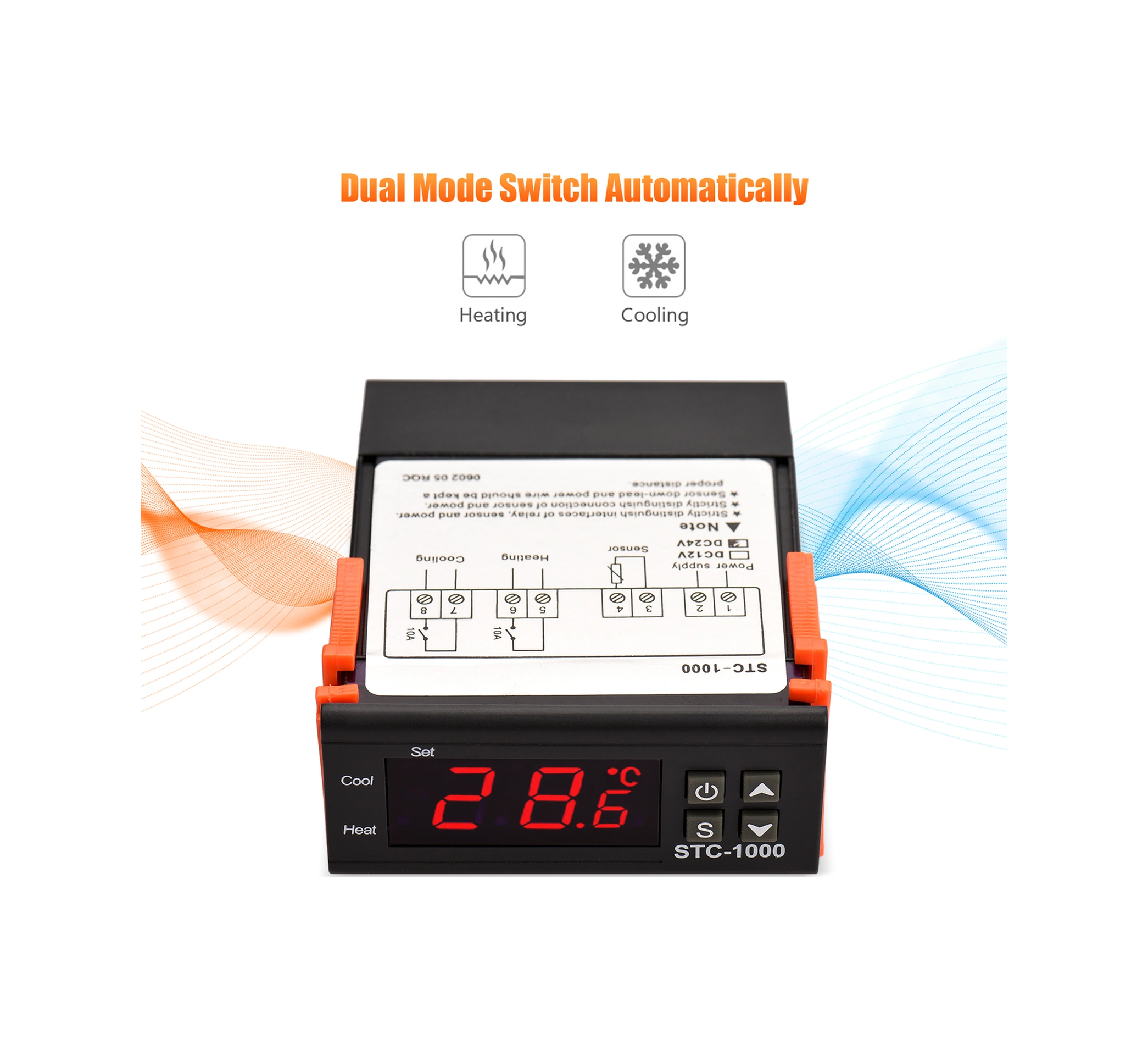 Skycity Stc-1000 Akıllı Sıcaklık Kontrol Cihazı: Otomatik Isıtma/soğutma, Sıcaklık Doğrulama, Gecikmeli Başlangıç, Dc 24v, Abs Malzeme