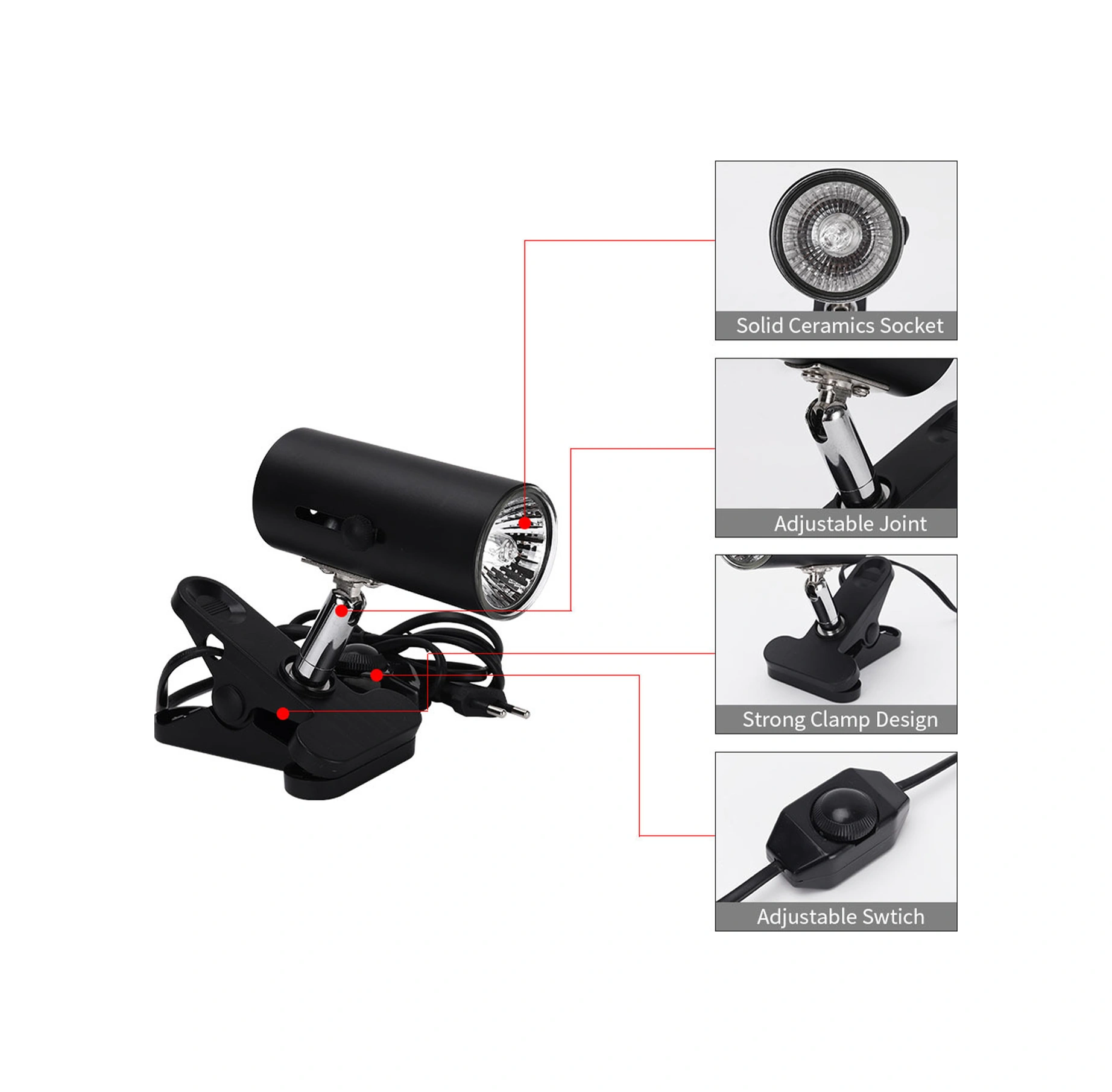 Skycity Sürüngenler İçin Isıtıcı Işık, Güneş Işığı Simülasyonu, E27 Vida, 50w Ampul, Döner Bağlantı, Avrupa Standartı, Siyah Siyah