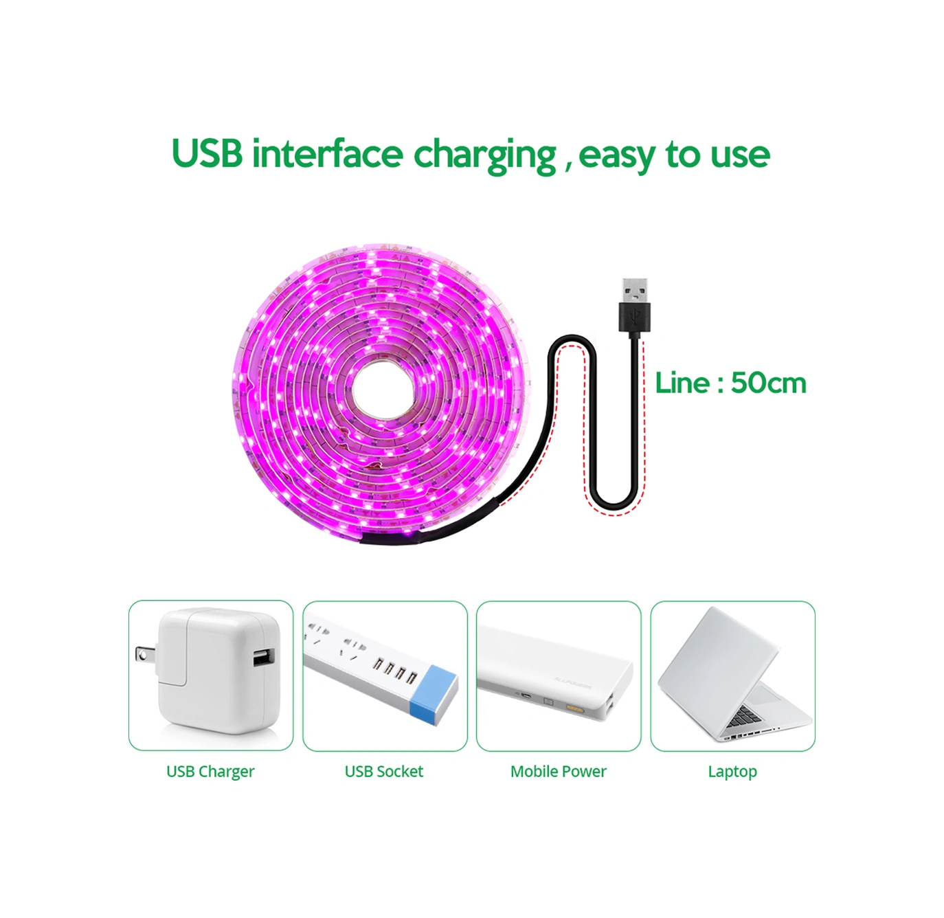 Skycity Usb 5v Tam Spektrum 2835 Smd Led Bitki Işık Şeridi, 2m Uzunluk, Ip65 Su Geçirmez, 30000+ Saat Ömür, Dıy Uyumlu Gösterildiği Gibi