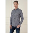 Slim Fit Baskılı %100 Pamuk Spor Mavi Gömlek G 1586 Mavi