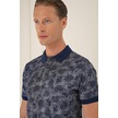 Slim Fit Dal Yaprak Desen Polo Yaka Pamuklu Lacivert Tişört Ts 884 Lacivert