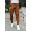 Slim Fit Körüklü Cep Paça Lastikli Esnek Kumaş Erkek Kargo Pantolon Hardal