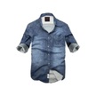 Slim Fit Saf Pamuk Denim Kumaş Kot Gömlek--laci Çizki Eskitme- Renkli