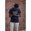 Slim Fit Sıfır Yaka Baskılı Pamuklu T-shirt Lacivert