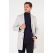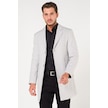 Slim Fit V Yaka Kışlık Kırçıllı Beyaz Kaşe Kaban-Beyaz