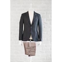 Slimfit Torba Cep Çizgili Mono Yaka Astarsız Çift Yırtmaç Likralı Kışlık Erkek Tek Ceket 001