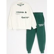 Slogan Baskılı Fırçalı Kumaş Kız Çocuk 2 İplik Eşofman 2028 Yeşil