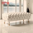 Smarto Relax Puf Adelboden Ahşap Ayaklı Kapitoneli 110x45x40 Cm Ekru Ekru