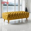 Smarto Relax Puf Adelboden Ahşap Ayaklı Kapitoneli 110x45x40 Cm Sarı Sarı