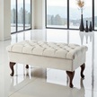 Gazzini Classic Torna Gürgen Ahşap Ayak Chester Model Kapitoneli Beyaz Puf Bench - Ceviz Ayak