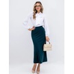BULALGİY Kadın Yeşil Saten Uzun Etek - BGA00060M