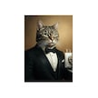 Smokinli Rakı İçen Kedi Art Mdf Tablo 25cmx 35cm