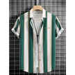 Snapbuy 2025 Erkek 3d Havai Gömlek - Basit Çizgili, Gevşek Nefes, Yazlık Kısa Kollugümüş Gümüş
