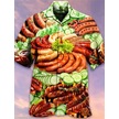 Snapbuy 3d Baskılı Sosis Desenli Hawaii Gömlek - Erkek Yaz Kısa Kollu Plaj Gömleğikadın Bej