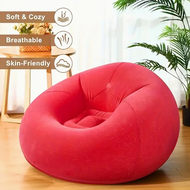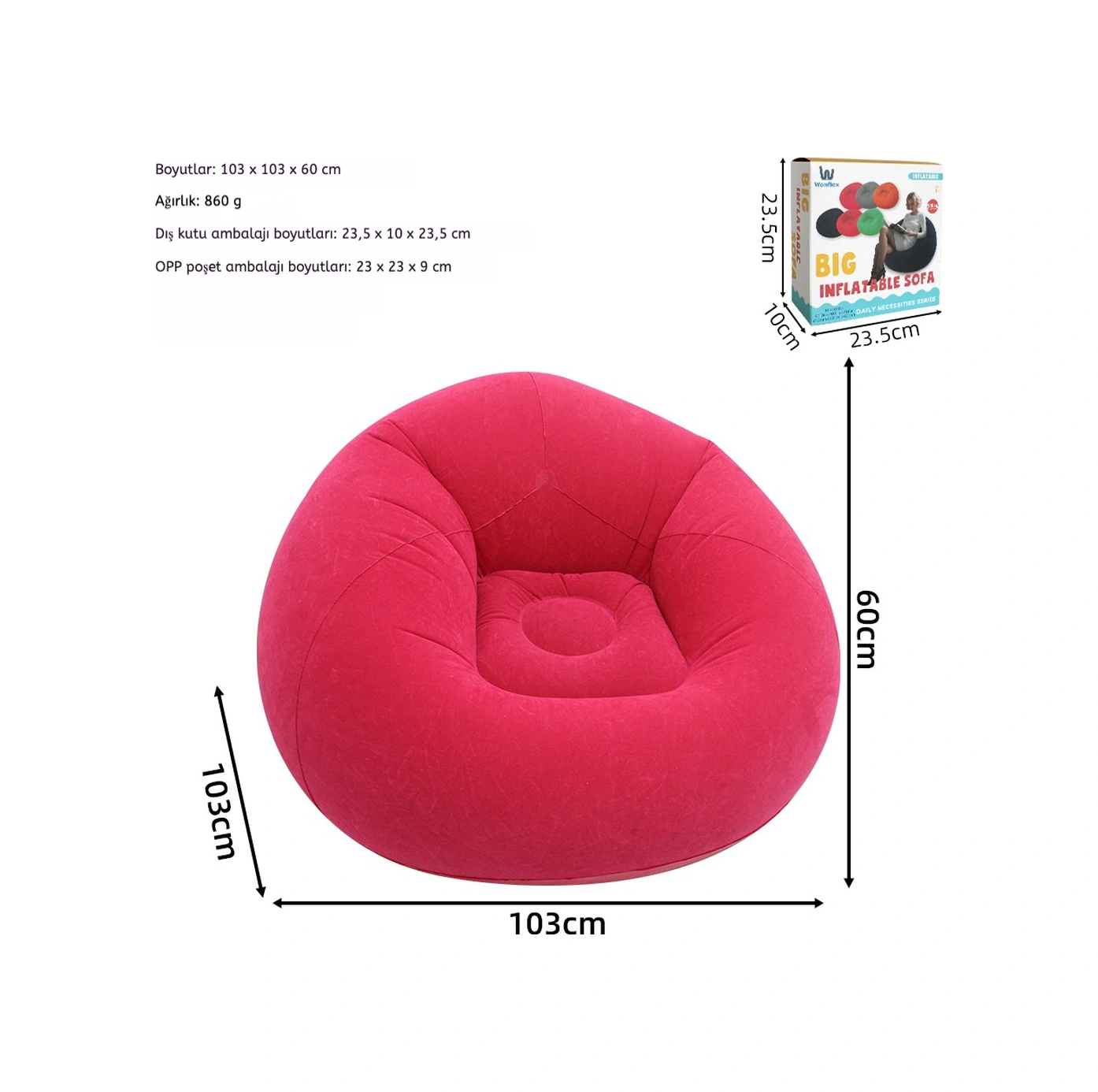 Snapbuy Kadife Kaplamalı Tek Kişilik Şişme Koltuk Kırmızı