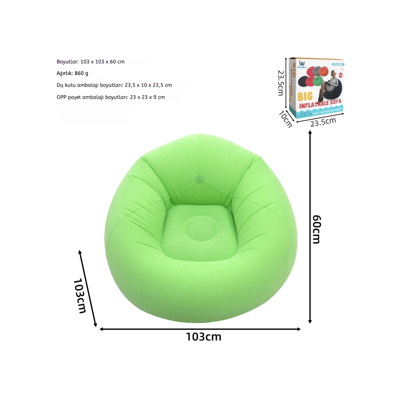 Snapbuy Kadife Kaplamalı Tek Kişilik Şişme Koltuk Yeşil