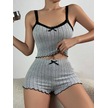 Snapbuy Kadınlar İçin İlkbahar Yaz Pijama Takımı - Dantel Üst Ve Şort Loungewear Bej