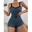 Snapbuy Kadınlar İçin İlkbahar Yaz Pijama Takımı - Dantel Üst Ve Şort Loungewear Mavi