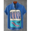 Snapbuy Retro 3d Sanat Baskılı Çizgili Balık Desen Keten Erkek Gömlekgri Gri