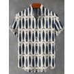 Snapbuy Retro 3d Sanat Baskılı Çizgili Balık Desen Keten Erkek Gömlekkahverengi Kahverengi