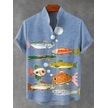 Snapbuy Retro 3d Sanat Baskılı Çizgili Balık Desen Keten Erkek Gömlekmavi Mavi