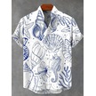 Snapbuy Retro 3d Sanat Baskılı Çizgili Balık Desen Keten Erkek Gömlekturuncu Turuncu