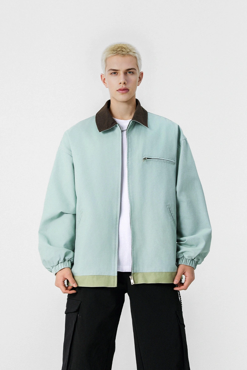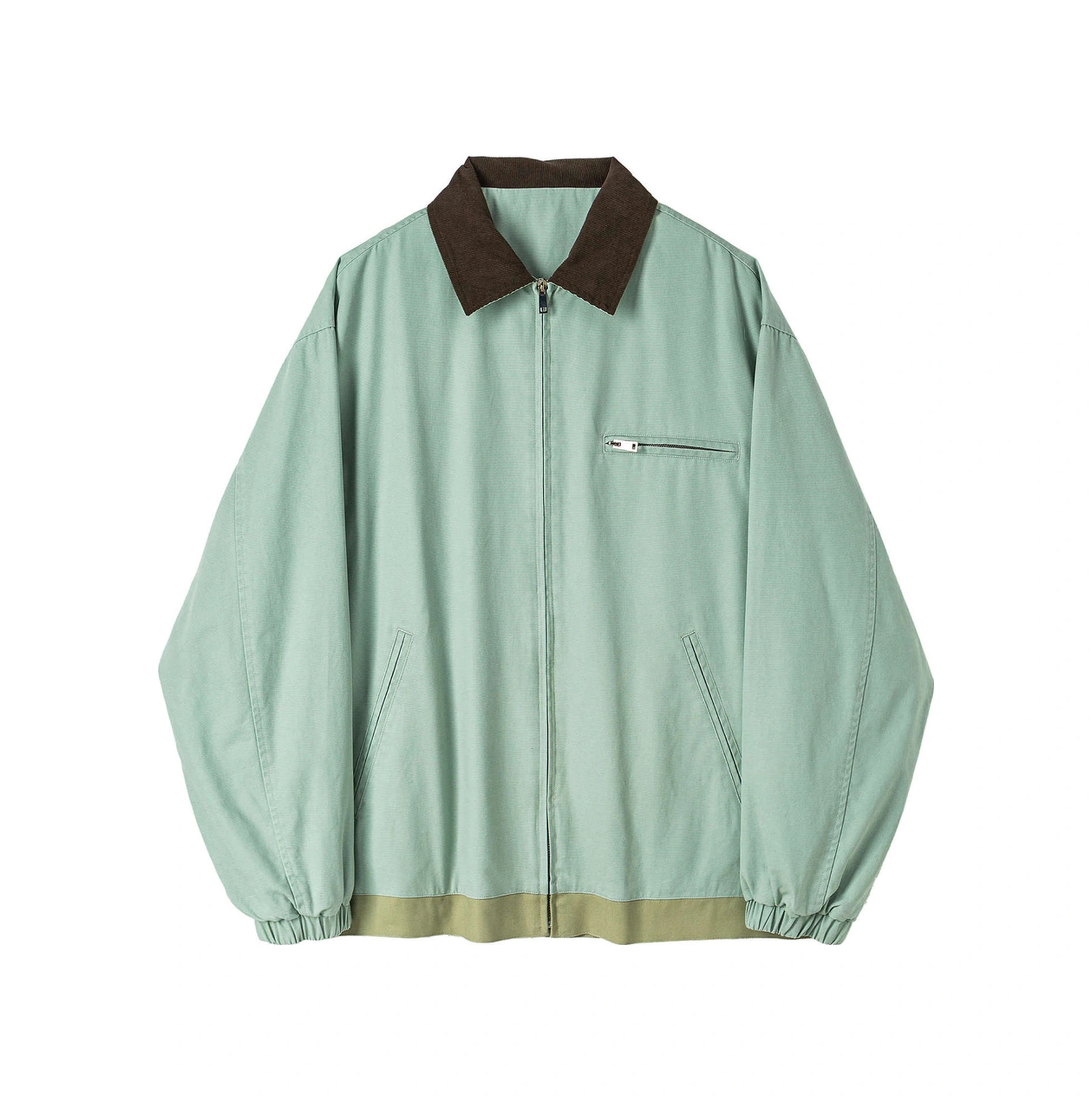 Snapbuy Yıkanmış Denim Ceket, Amerikan Retro Stili, Kontrast Yakalı, Bol Kesim Su Yeşili