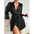 Snapbuykatı Saten Gece Elbisesi Uzun Kollu V Yaka Kemerli Kadın Pijamagökyüzü Mavi Gökyüzü Mavi