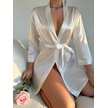 Snapbuykatı Saten Gece Elbisesi Uzun Kollu V Yaka Kemerli Kadın Pijamamavi Mavi