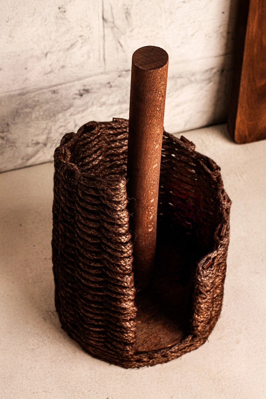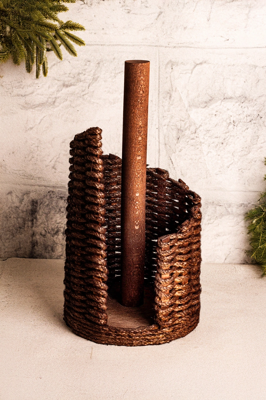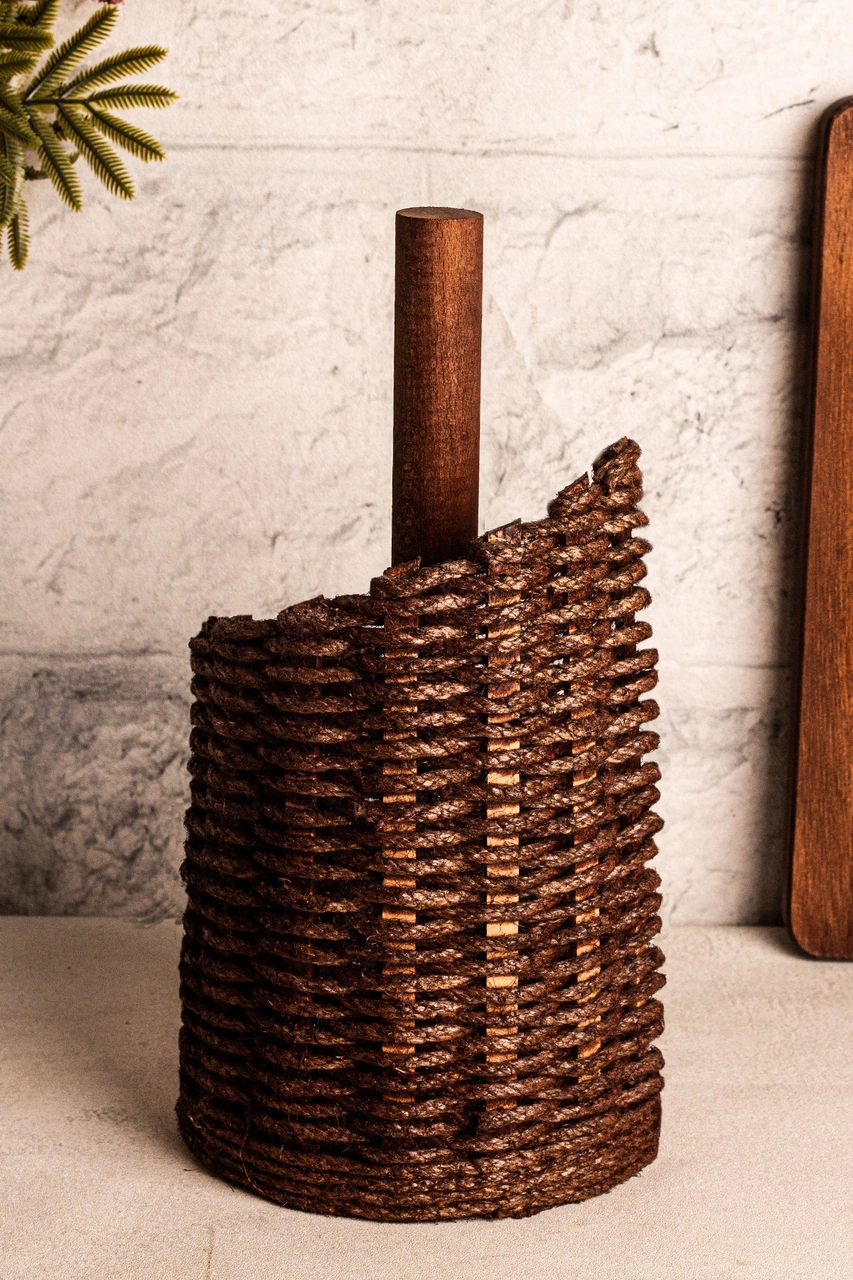 Snippy Haserya - Ahşap Kağıt Havluluk Masaüstü Rulo Kağıt Havluluk Dik Peçetelik Kahverengi