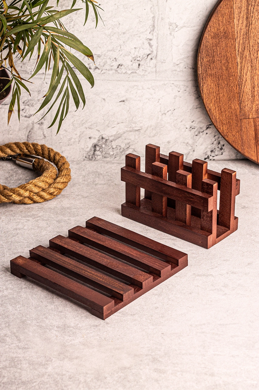 Snippy Sofra Mutfak Sunumluk Peçetelik Nihale 2'li Sofra Seti Mutfak Düzenleyici Ketty Farmy Kahverengi