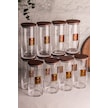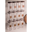 Snippy Story - 12'li Etiketli Cam Jumbo Saklama Kabı Baharatlık Ahşap - Şeffaf