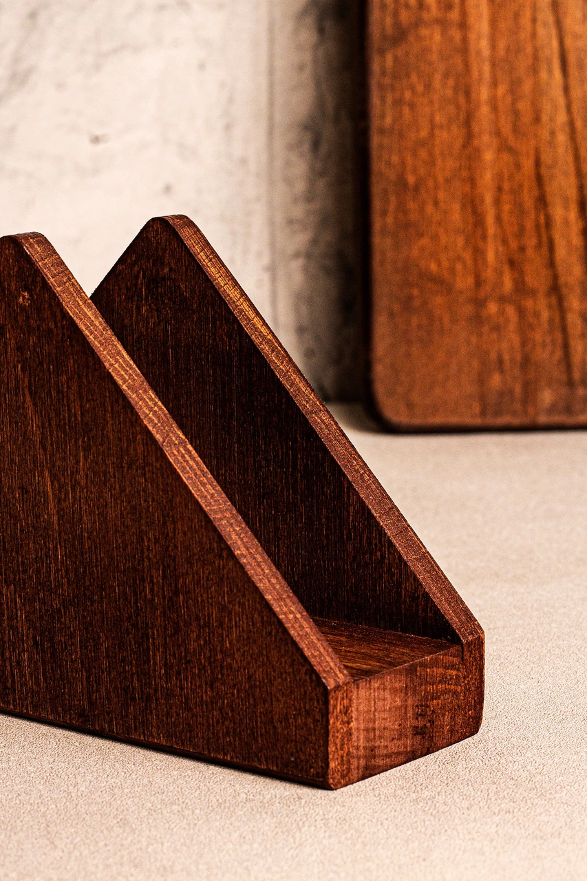 Snippy Zaro - Ahşap Peçetelik Masaüstü Peçete Organizeri Kahverengi