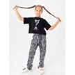 Kız Çocuk Desenli Düğmeli Uyku Bantlı Alt Üst Pijama Takım Pembe