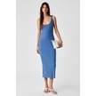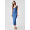 SOFUTEY Kadın Slim Kolsuz Oyuk Yaka Düz Paça Mavi Elbise