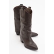 Sojo Kahverengi Cilt Hakiki Deri Kalın Topuklu Kısa Çizme Kahverengi Deri