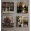 Sonbahar Ağaçlı Manzaralar Doğal Taş Bardak Altlığı 4'lü Set - Natural Stone Coasters - Taş Çok Renkli
