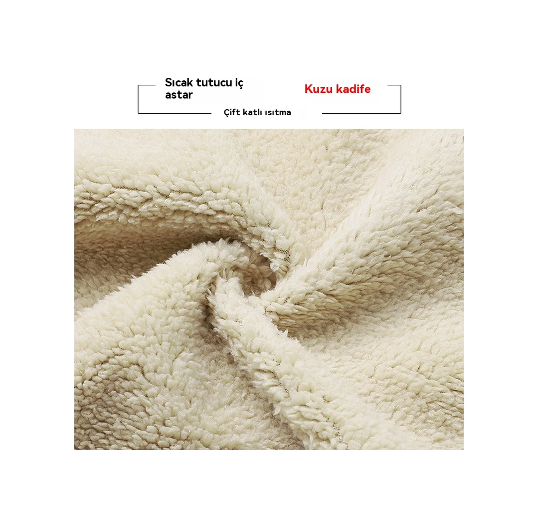 Sonbahar Ve Kış Bol Kalın Kuzu Derisi Sıcak Günlük Kazak Ceket Siyah