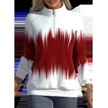Sonbahar Ve Kış Kadın Ceket Kademeli Değişim Baskılı Yaka Fermuar Uzun Kollu Kış Tarzı Yarım Yüksek Yaka Hırka Ceket Kaban Kırmızı