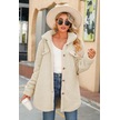 Sonbahar Ve Kış Kadın Ceket Yaka Uzun Kollu Gevşek Düğmeler Sahte Cepler Demir Olmayan Uzun Peluş Ceket Kayısı Açık Bej