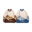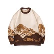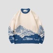 Sonbahar Ve Kış Kravat Boyalı Kar Dağ Trend Marka Yuvarlak Yaka Kazak Erkek Bol Kazak Üniversite Uzun Kollu Kazak Erkek Mavi