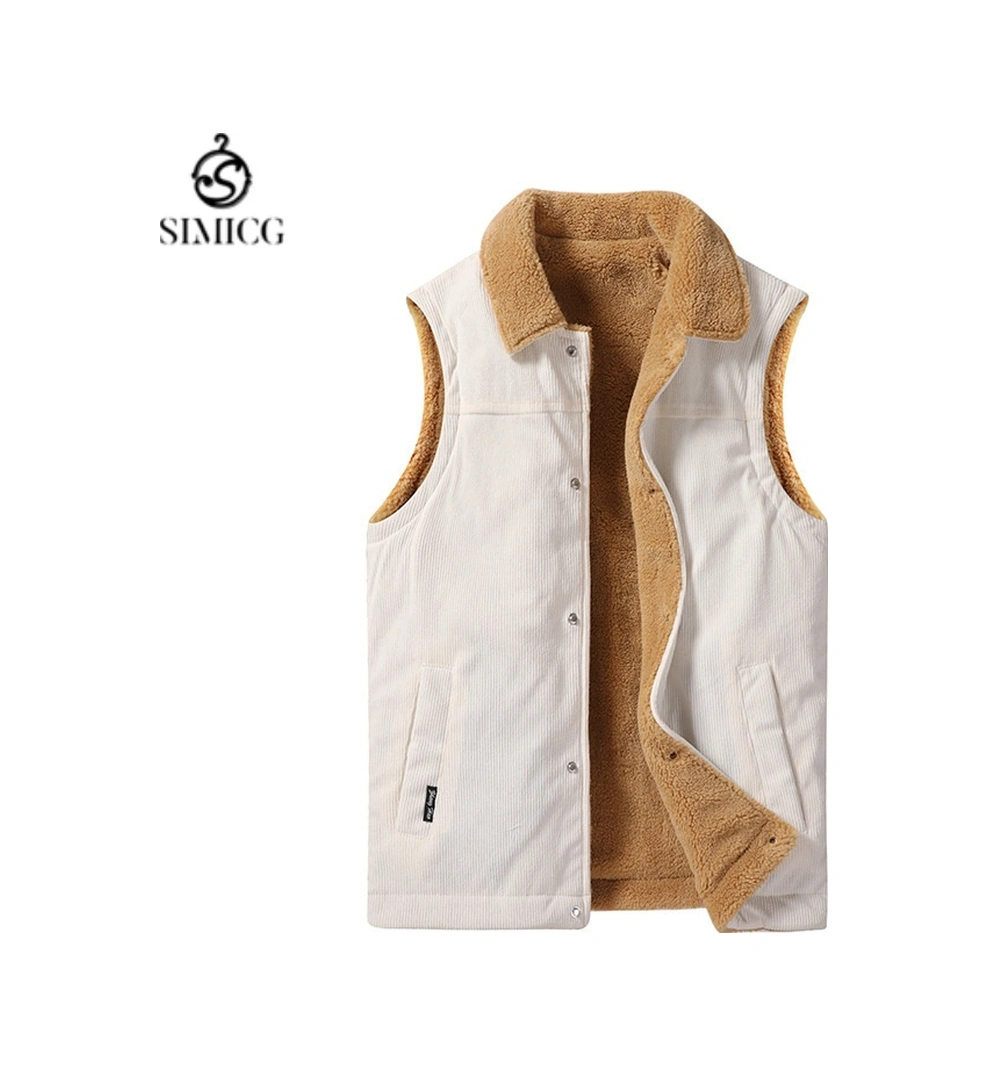Sonbahar Ve Kış Polar Yelek, Düz Renk Erkek Yeleği, Dik Yaka Yelek Beyaz