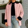 Sonbahar Ve Kış Renk Bloklu Tek Düğmeli Uzun Kollu Kadın Ceket Üstü Pembe