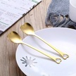 Sones 2 Adet Paslanmaz Çelik Kaşık Taşınabilir Metal Kahve Kaşığı Yaratıcı Aşk Kalp Şeklinde Düğün Partisi Hediye Yemek Takımı, Renk: Altın Tek Delik Aşk