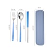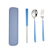 Sones 3 Adet / Set Taşınabilir Paslanmaz Çelik Sofra Takımı Yaratıcı Set Çubuk Kaşık Çatal Hediye, Renk: Mavi
