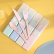 Sones 4'ü 1 Arada Taşınabilir Buğday Samanı Sofra Takımı Açık Hava Seyahat Saklama Sofra Takımı Kutusu, Stil: B Çubuklarla Diğer