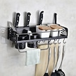 Sones B Versiyon 50cm 2 Bardak 10 Kanca Mutfak Çok Fonksiyonlu Duvara Monte Baharatlık Saklama Rafı Siyah