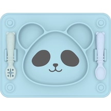 Sones Bebek Entegre Vakumlu Bardak Izgara Yemek Tabağı Çocuk Panda Silikon Yapıştırıcı Tabaklar Çatal Ve Kaşıkla Gök Mavisi